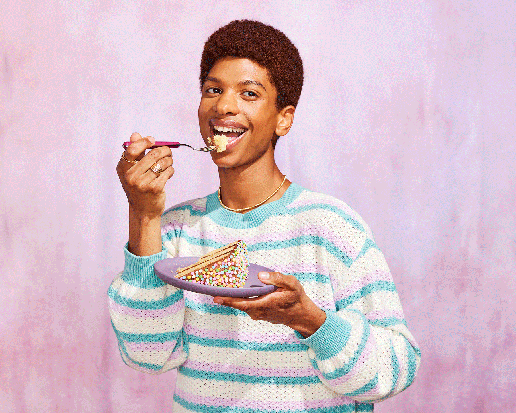 On set, the synergy pulsed through us like electricity. Our goal was to show enthusiastic expressions of people interacting with food against a vibrant set.